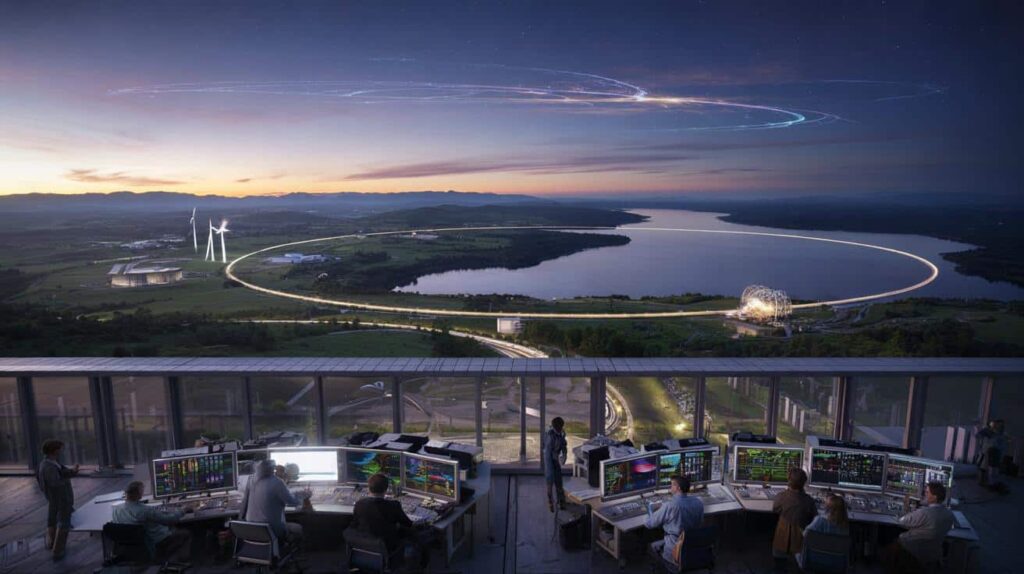 CERN’s current star machine, the LHC, sits in a 27 km tunnel and already accelerates protons to energies close to the speed of light. The FCC proposal multiplies that ambition several times over. Engineers envision a circular tunnel with a circumference of about 91 km, looping under the Geneva basin and parts of France and Switzerland.