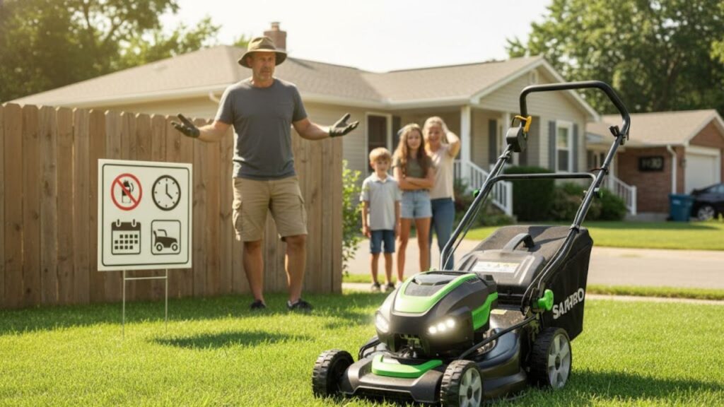 The neighbor’s lawn mower fires up almost on schedule at 12:05 p.m., just as you finally sit down with a sandwich. The engine rattles, the sharp scent of fuel drifts through the air, and freshly cut grass sprays over the low fence. It’s a familiar piece of the suburban soundscape.