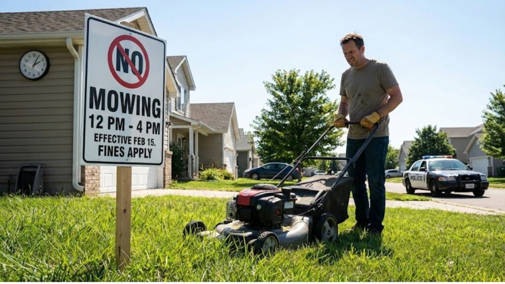- New No-Mow Time Slot: The rule bans lawn mowing between noon and 4 p.m. starting February 15, with fines for violations.