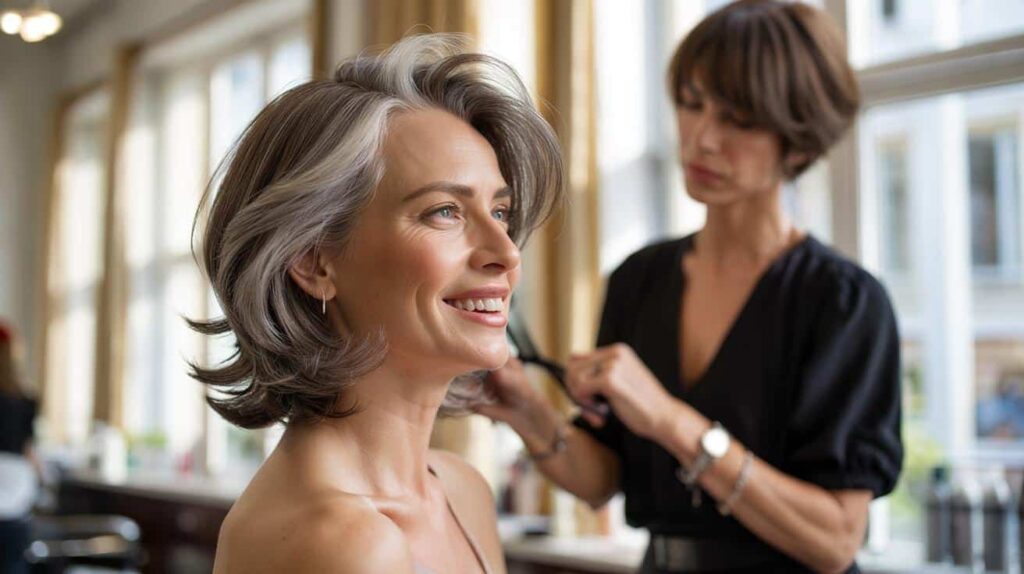 A mid-length, layered cut that respects your natural texture, your grey streaks, even your cowlicks, sends a different message than a radical, drastic “new me” chop. It doesn’t erase your age. It rearranges the spotlight. Your eyes first. Then your smile. Hair becomes the frame, not the costume.