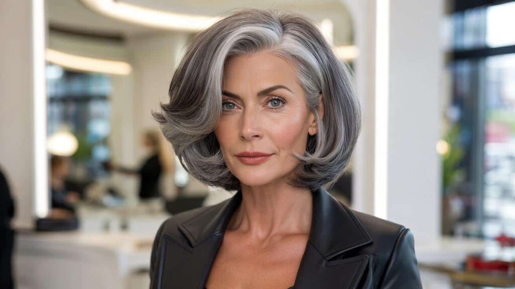 Modern haircut Structured bob, layers, or short cut that lifts the face Makes gray look intentional and stylish, not neglected