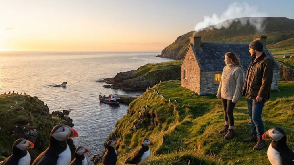 The job listing sounds almost like a joke. A tiny Scottish island, with a population barely large enough to fill a small café, is searching for seasonal staff and caretakers ready to spend six months at the edge of the map. The pay sits around €5,000 per month. Rent is completely free. The extras include puffins in spring, whales in the bay, and sunsets so dramatic they look edited even when they’re not.