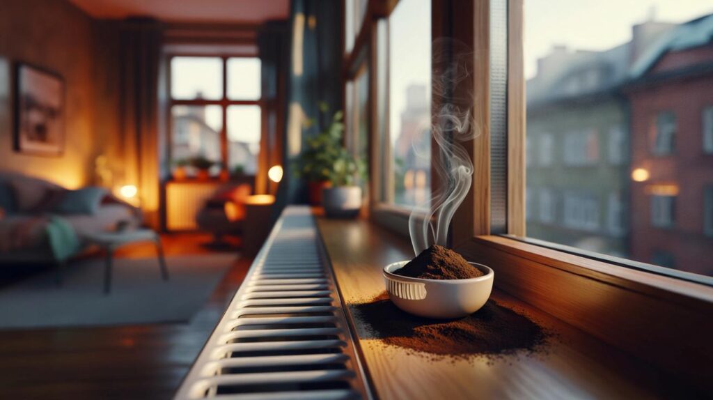 That’s where the bowl of coffee grounds comes in. People are quietly placing yesterday’s filter or espresso grounds on the radiator shelf or on a nearby surface, letting the gentle warmth do its work. The idea is simple: the grounds trap bad smells and release a soft, roasted scent instead. It feels low-tech and strangely comforting in a world obsessed with smart devices.