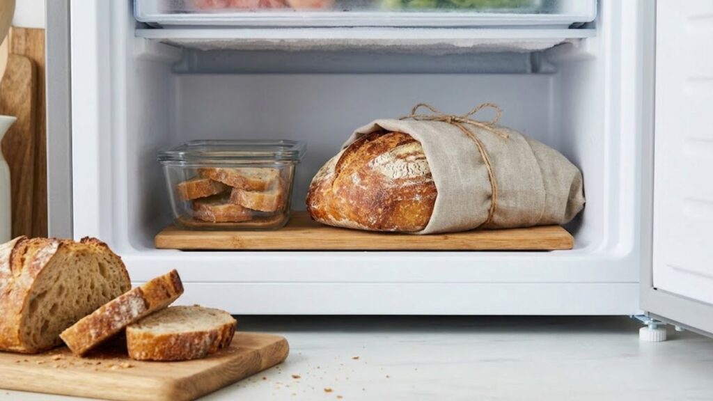 The key to freezing bread properly is to slice it while it’s still fresh. Once it’s fully cooled, slice the loaf and lay the pieces out on a tray, keeping them separate so they don’t stick together. Leave them in the freezer for about 45-60 minutes to firm up before transferring them into a rigid container with a tight-fitting lid. This method protects the bread from freezer burn and keeps it in the best shape possible.