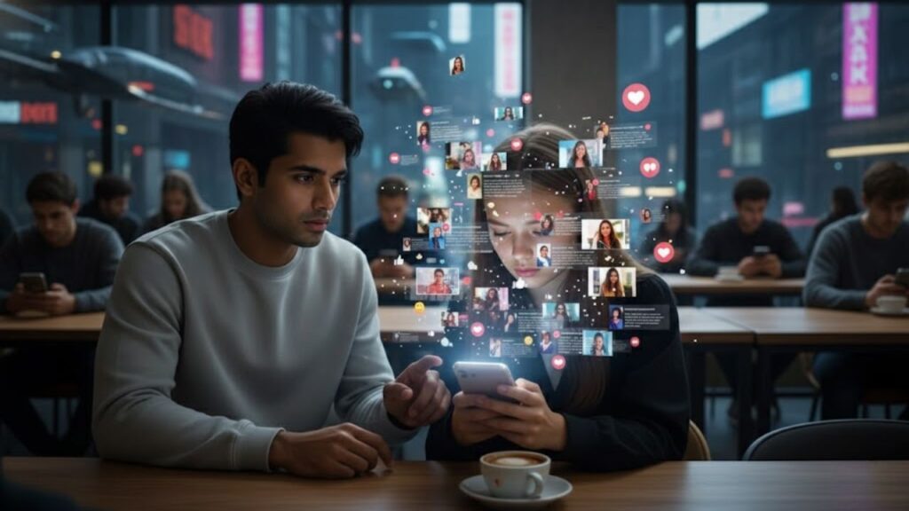 The girl sitting in the café looked no older than 19. Her coffee cooled untouched while her thumb kept swiping, swiping, swiping through an endless TikTok feed. Every few seconds, her expression shifted—a brief laugh, a tight frown, a subtle wince when another perfect body or perfect life appeared.